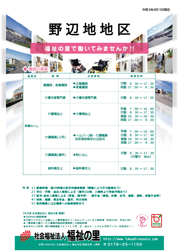 福祉の里は品質管理・本質保証に関する国際規格「ISO9001」の認証を取得しました。